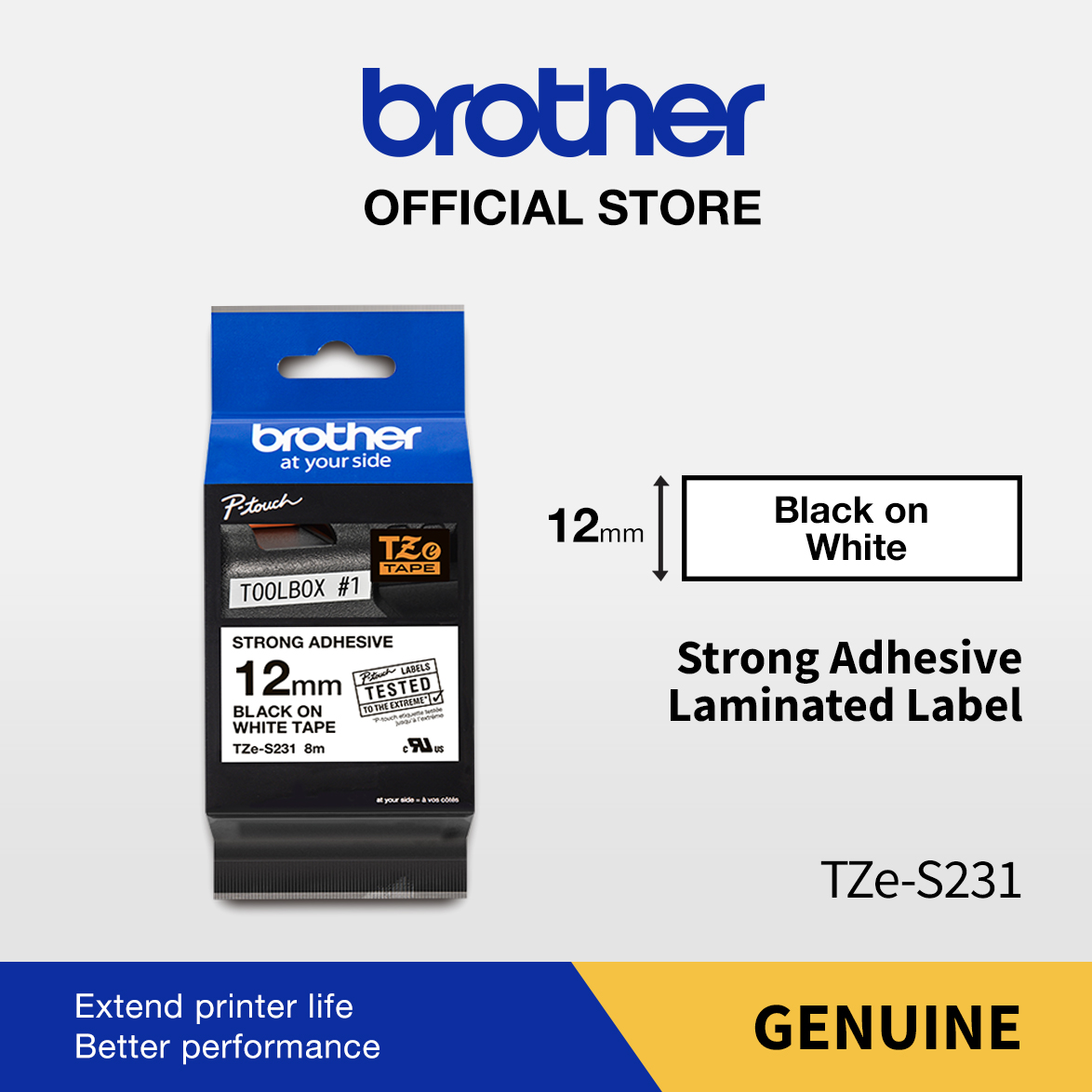 Brother Tape Tze-S231 12mm Strong Adhessive Black On White Ideal digunakan pada printer label umum di kantor, tempat kerja atau rumah, dengan panjang 12 mm. Brother pita dengan kategori warna strong adhessive black on white label kaset sempurna untuk mengidentifikasi isi file folder, file arsip, lemari arsip, kotak penyimpanan dan USB flash drive.
